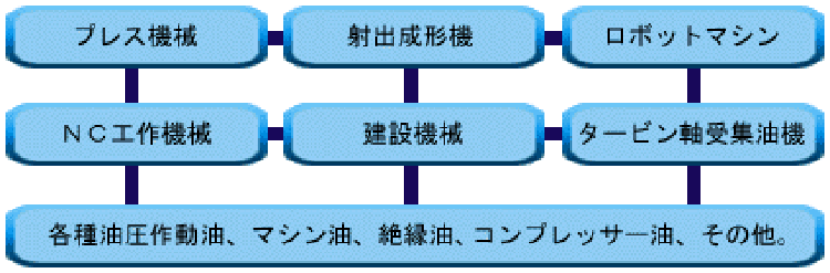 種々の浄油装置の他に、独自の開発によるオイル添加剤や分析診断ノウハウを用いてオイル性能の回復と維持を計り、機器のトラブルを防止します。